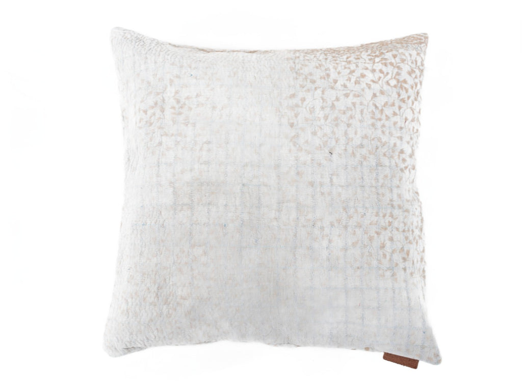 Fine Q are Sari cushions produced from a type of sari that has a different expression than our normal Sari Kantha cushions. They are made of thick recycled cotton sari laid together with several layers in between and with a worn look, where the saris inside help to give the whole pillow a very raw vintage look. They are toned down in colors and patterns and are sewn with smaller and tighter Kantha stitches, which give them an authentic look..