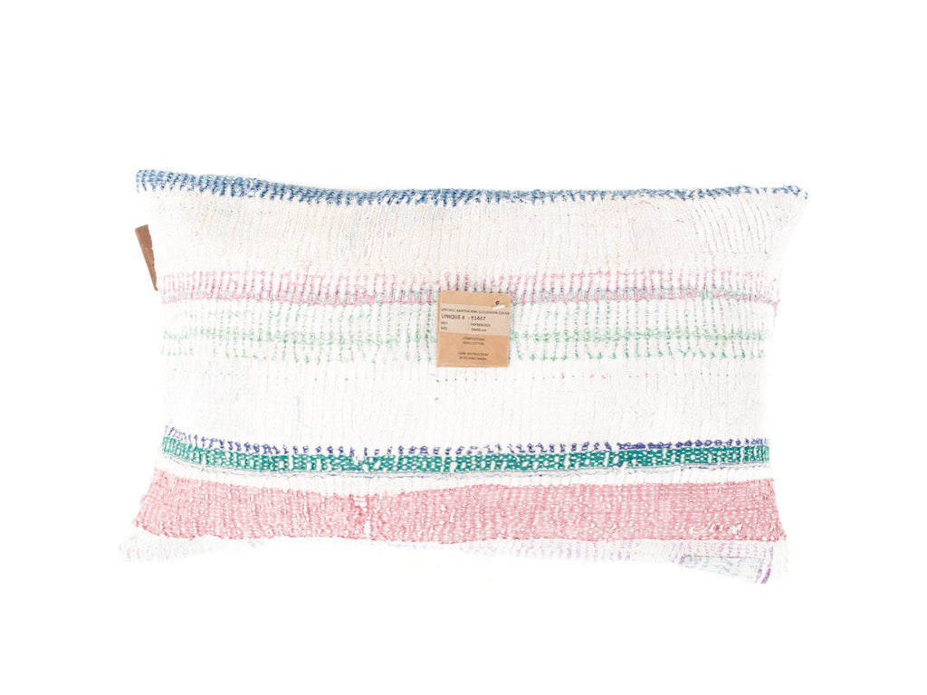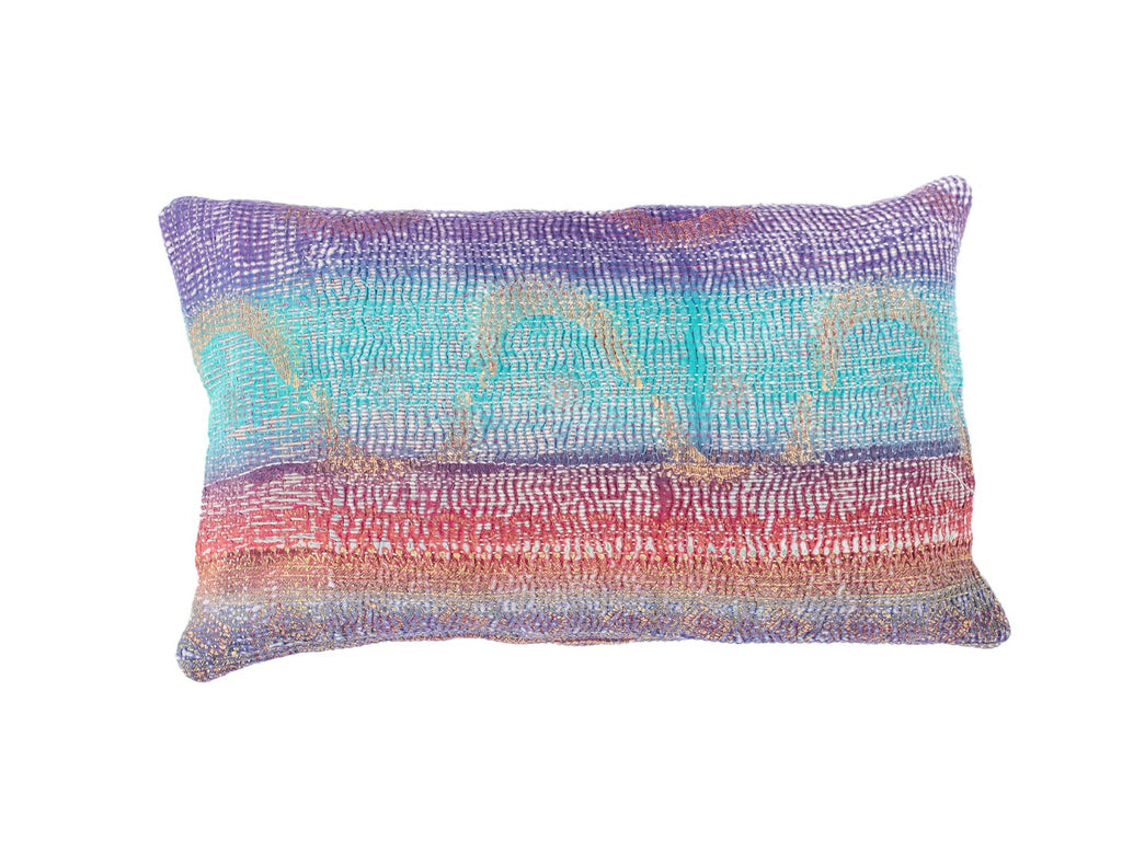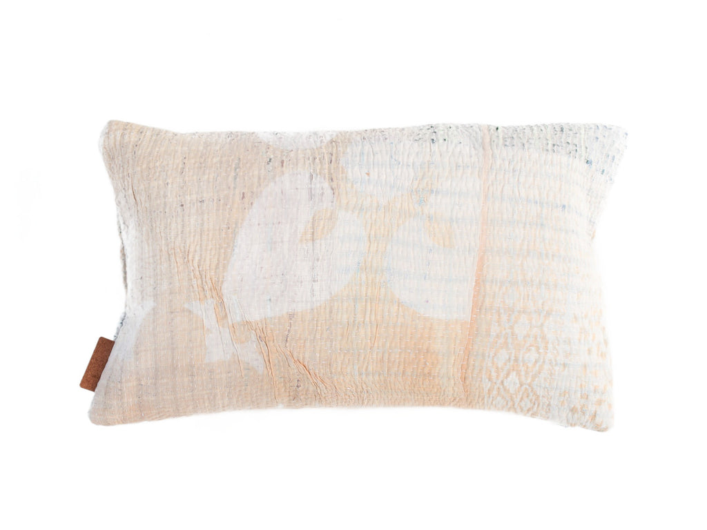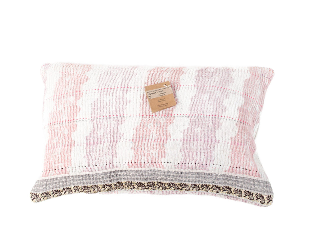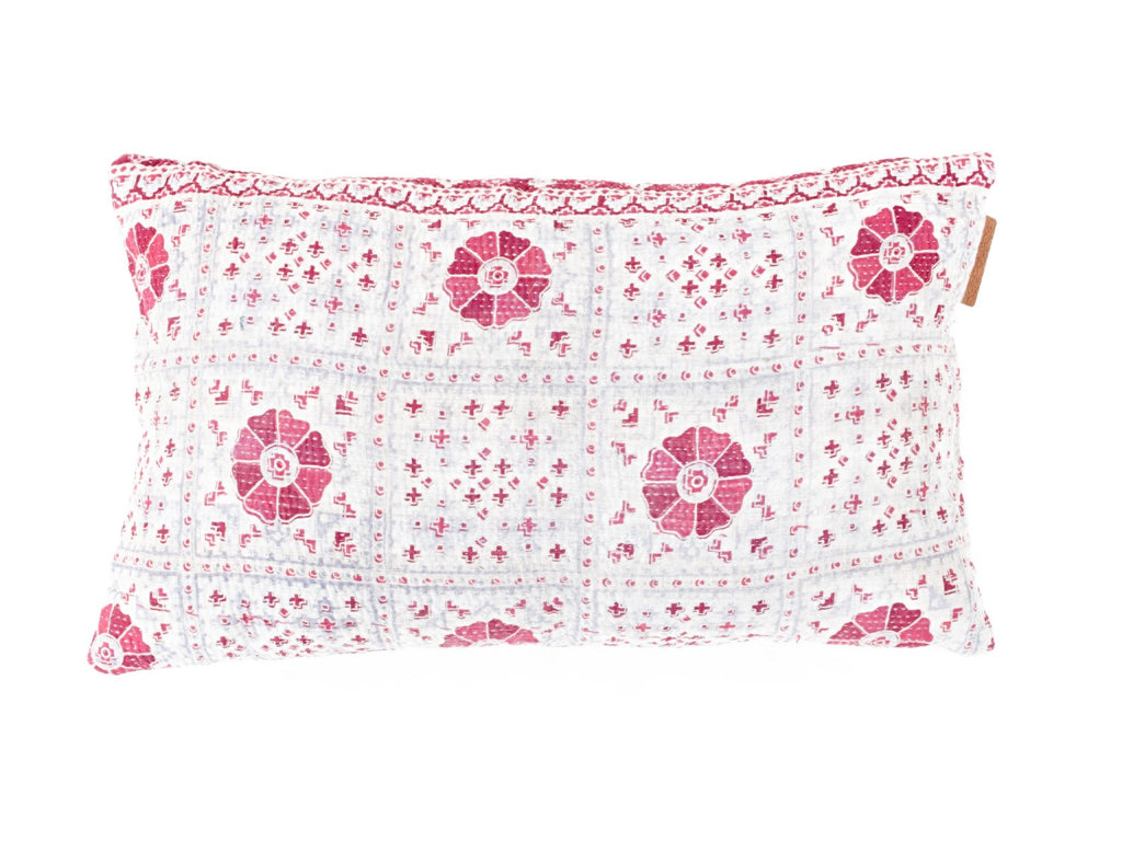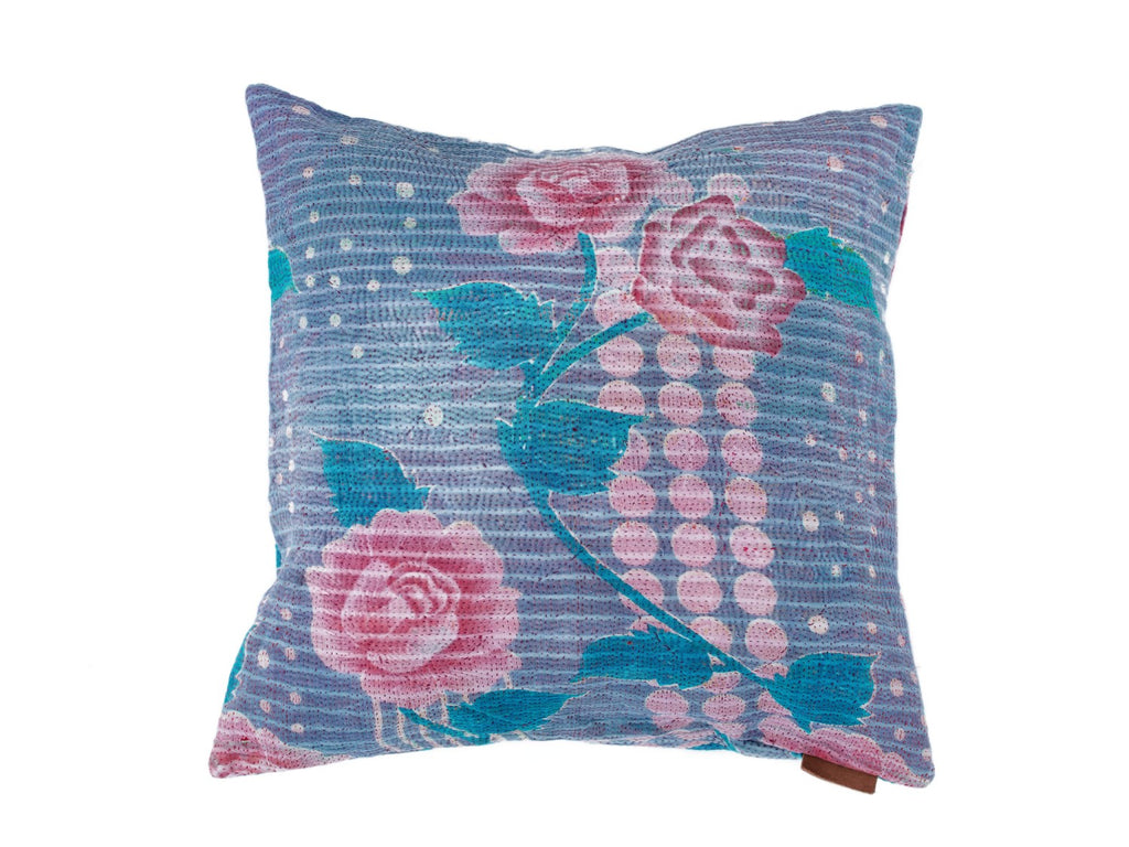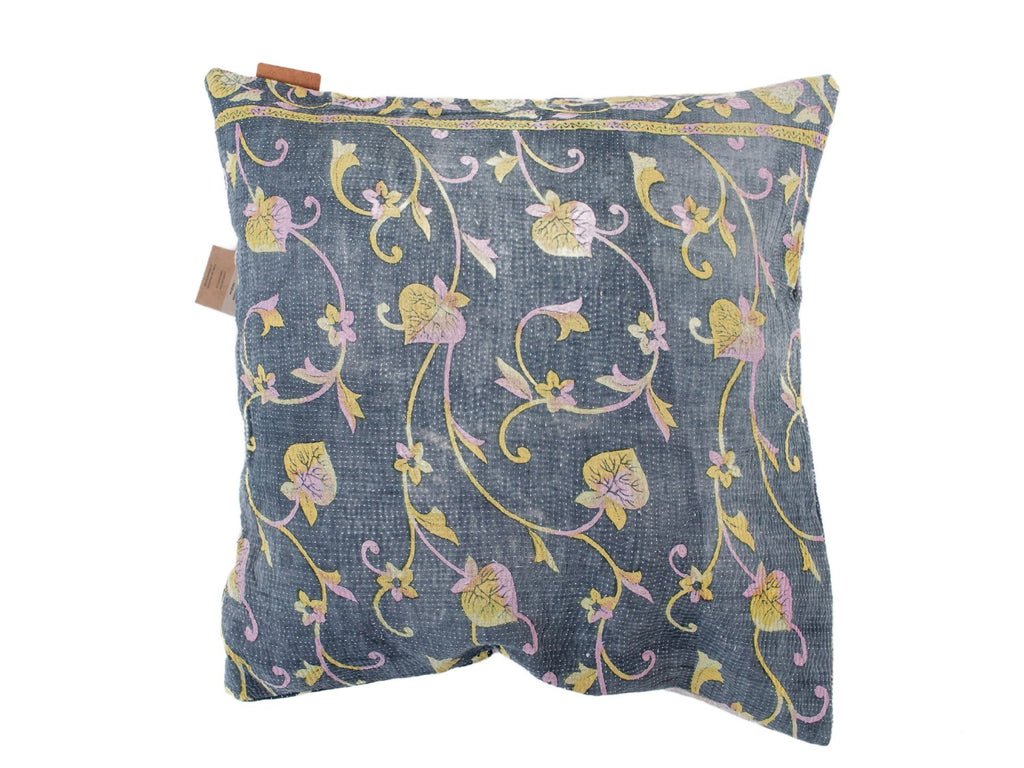 Fine Q are Sari cushions produced from a type of sari that has a different expression than our normal Sari Kantha cushions. They are made of thick recycled cotton sari laid together with several layers in between and with a worn look, where the saris inside help to give the whole pillow a very raw vintage look. They are toned down in colors and patterns and are sewn with smaller and tighter Kantha stitches, which give them an authentic look..